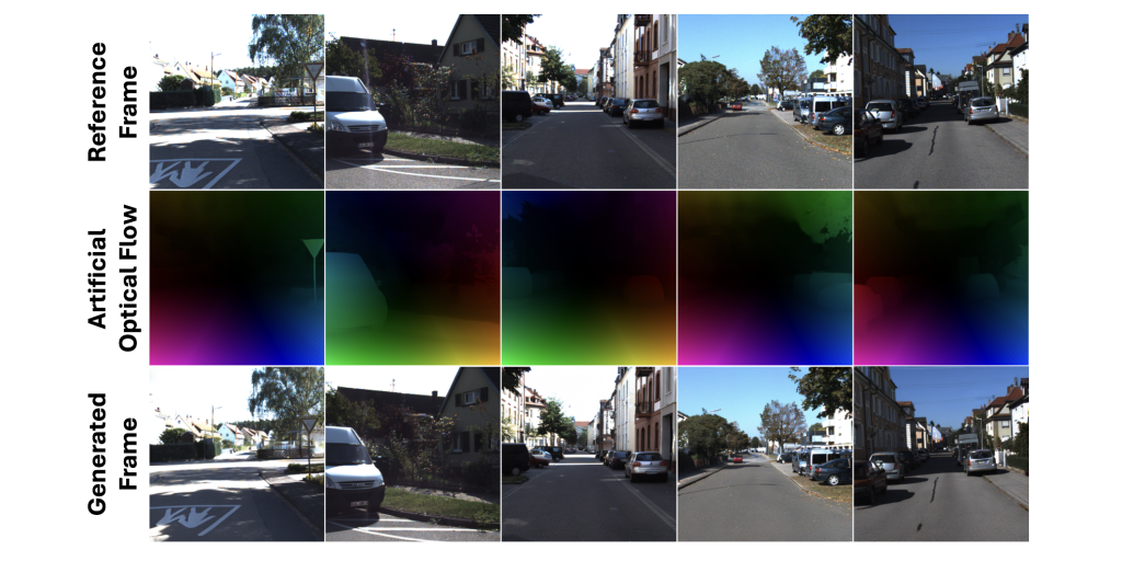 ![]() | GenOpticalFlow: A Generative Approach to Unsupervised Optical Flow Learning Yixuan Luo*, Feng Qiao*, Zhexiao Xiong, Yanjing Li, Nathan Jacobs arXiv, 2026 Optical flow estimation is a fundamental problem in computer vision, yet the reliance on expensive ground-truth annotations limits the scalability of supervised approaches. Although unsupervised and semi-supervised methods alleviate this issue, they often suffer from unreliable supervision signals based on brightness constancy and smoothness assumptions, leading to inaccurate motion estimation in complex real-world scenarios. To overcome these limitations, we introduce \textbf{\modelname}, a novel framework that synthesizes large-scale, perfectly aligned frame–flow data pairs for supervised optical flow training without human annotations. Specifically, our method leverages a pre-trained depth estimation network to generate pseudo optical flows, which serve as conditioning inputs for a next-frame generation model trained to produce high-fidelity, pixel-aligned subsequent frames. This process enables the creation of abundant, high-quality synthetic data with precise motion correspondence. Furthermore, we propose an \textit{inconsistent pixel filtering} strategy that identifies and removes unreliable pixels in generated frames, effectively enhancing fine-tuning performance on real-world datasets. Extensive experiments on KITTI2012, KITTI2015, and Sintel demonstrate that \textbf{\modelname} achieves competitive or superior results compared to existing unsupervised and semi-supervised approaches, highlighting its potential as a scalable and annotation-free solution for optical flow learning. We will release our code upon acceptance. |